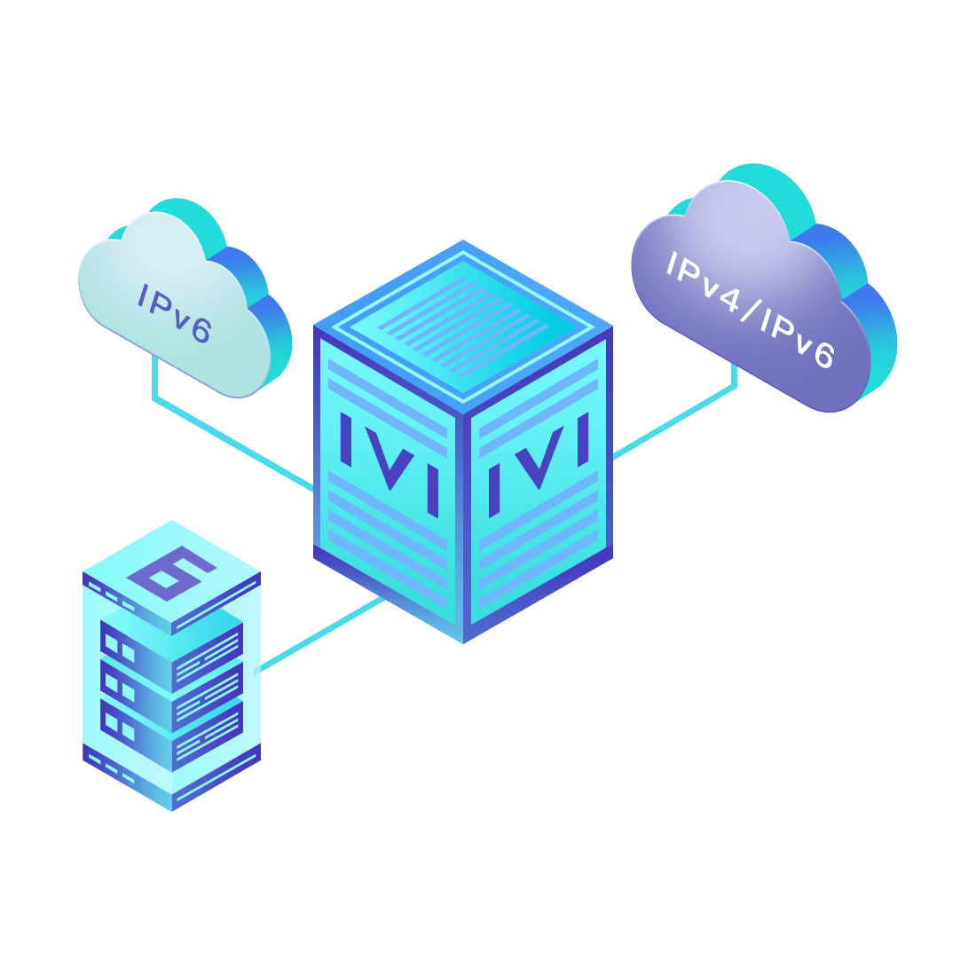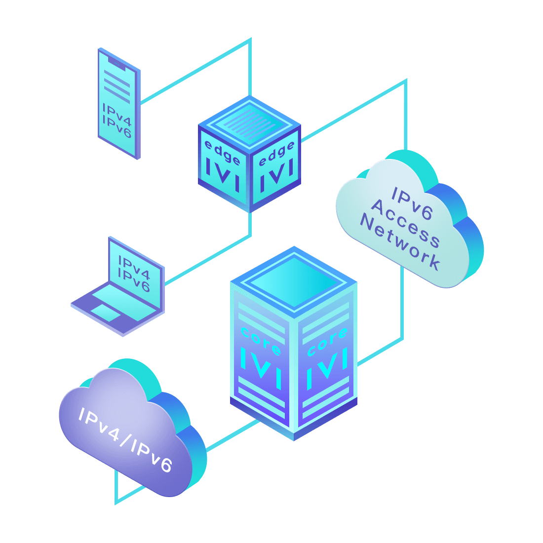 對正在進行IPv6整體升級規(guī)劃的運營商,應用IPv6升級方案2.5,通過IVI無狀態(tài)翻譯技術和純IPv6接入網絡,為雙??蛻舳撕碗p棧服務器提供連通服務。